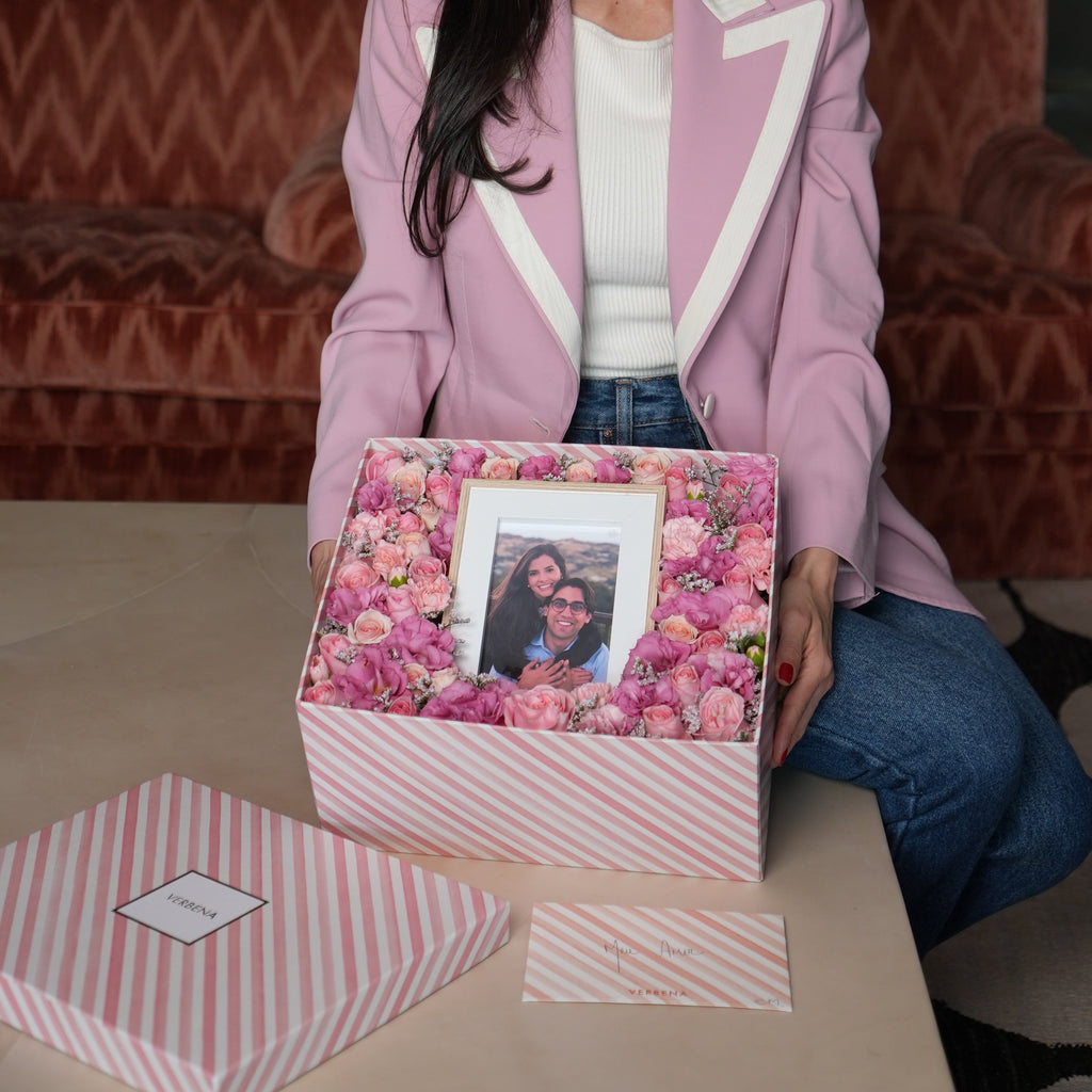 Para torná-lo ainda mais especial, envie a foto que deseja eternizar para verbena@verbenaflores.com.br — nós cuidaremos da impressão e montagem.