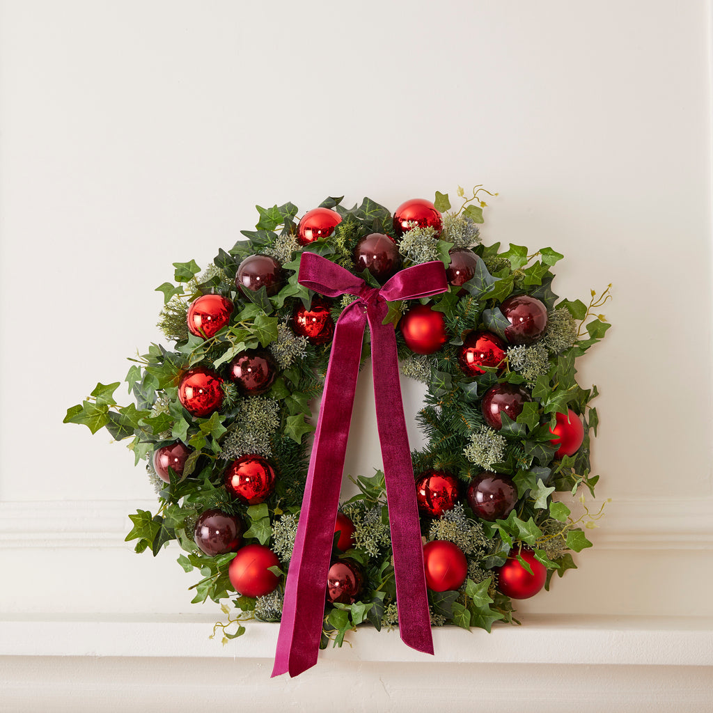 Clássica, muito delicada e elegante, a Guirlanda Vendome é montada com folhagens artificiais e bolas em tons de vinho e vermelho. Possui excelente durabilidade por muitas temporadas.