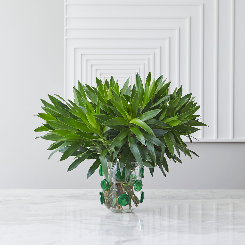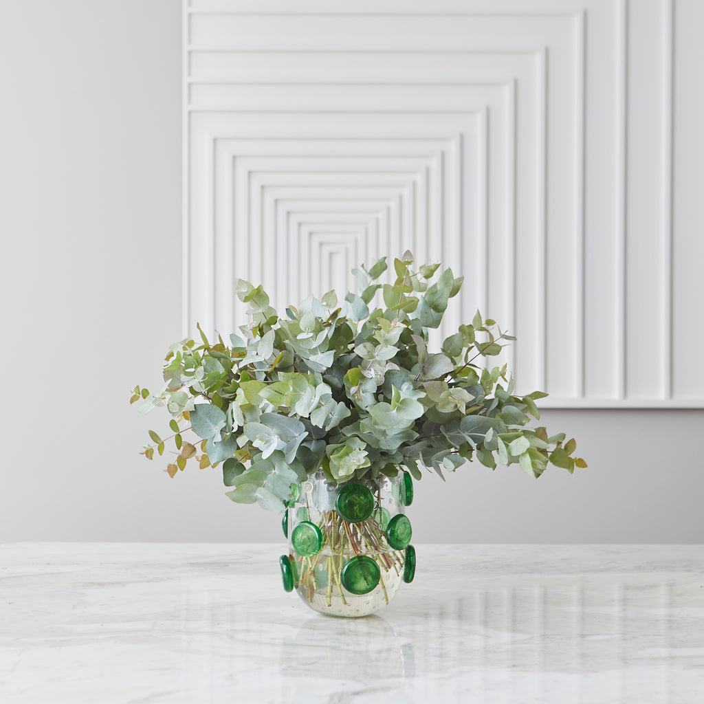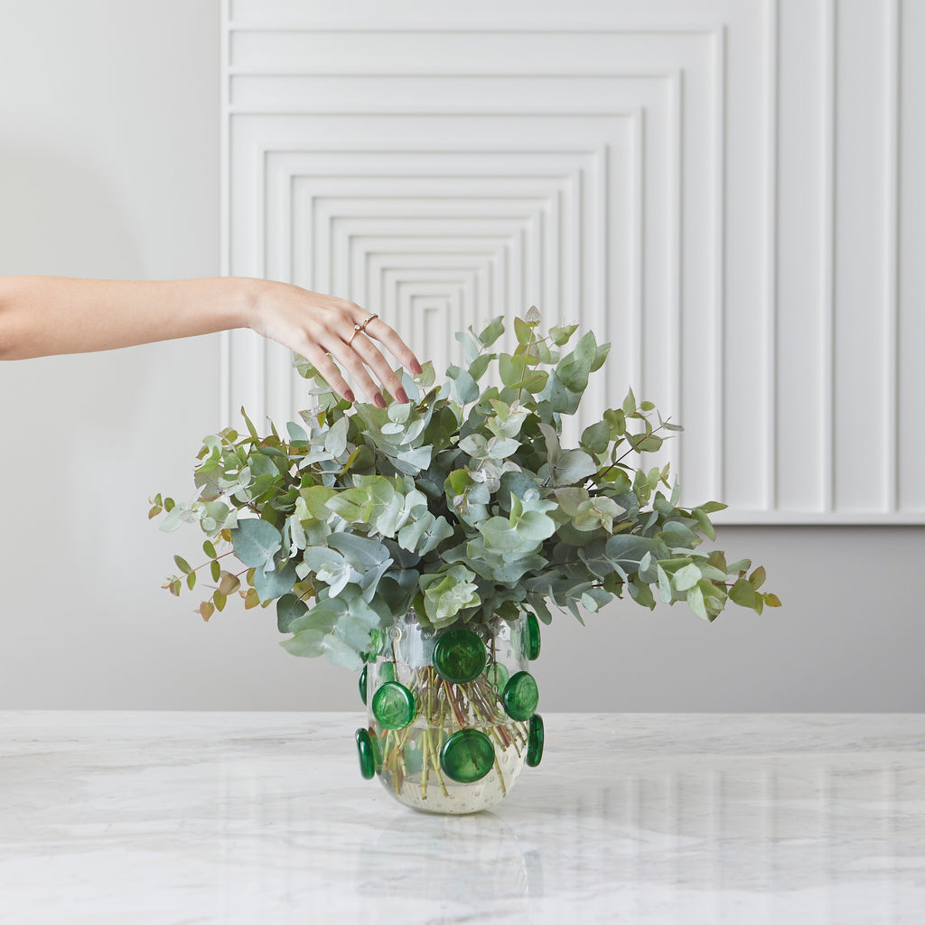 Descubra a nova coleção Verbena at Home e leve sofisticação para sua decoração. O Vaso Pompideau, em cristal de Murano translúcido com delicados detalhes de esferas verdes, é a perfeita combinação de elegância e exclusividade.