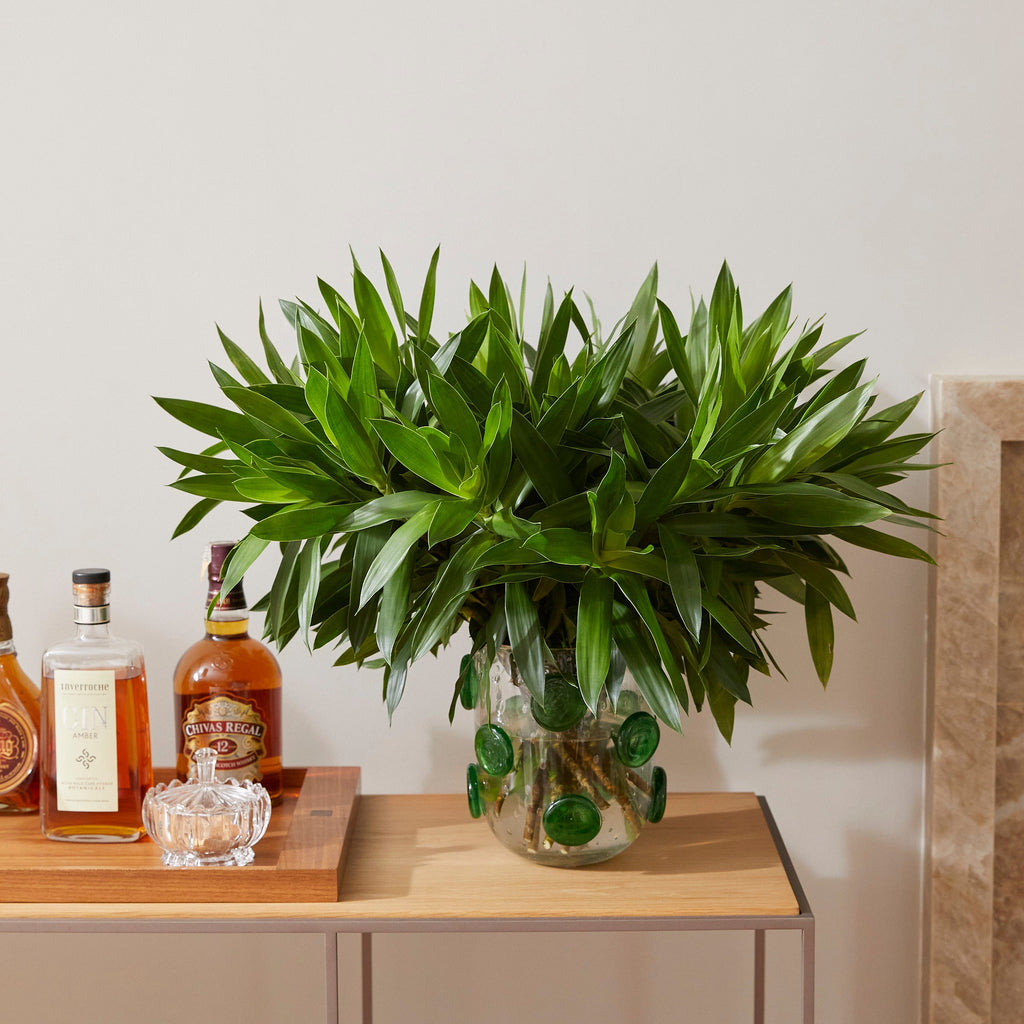 Nas opções de folhagens como Eucalipto ou Dracena Verde.
