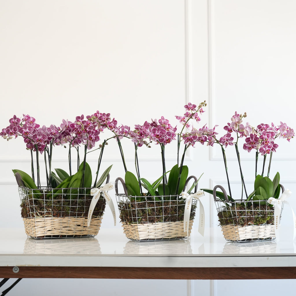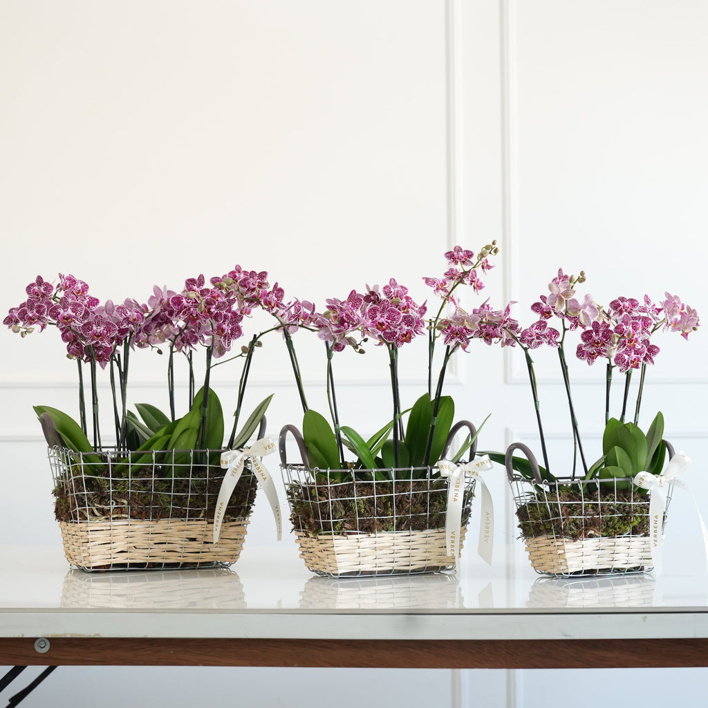 TRIO DE CESTAS EM METAL COM ORQUIDEAS PINK
